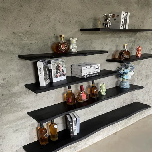 Charcoaled Live Edge Floating Wood Shelf – Rustic Natura...