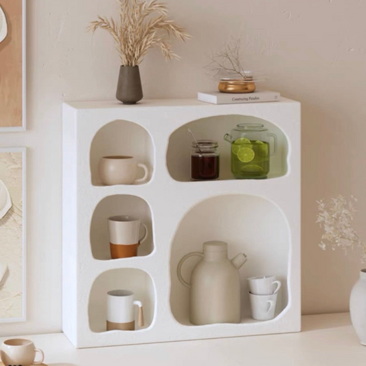 Boho White Side Table Wavy Storage Shelf from Ausique De...