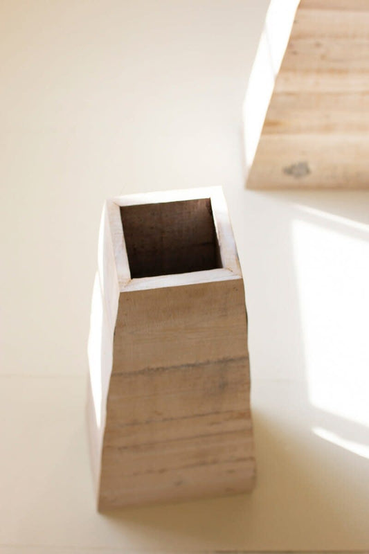 Kalalou Set of 2 Whitewashed Recycled Wood Floor Vases –...
