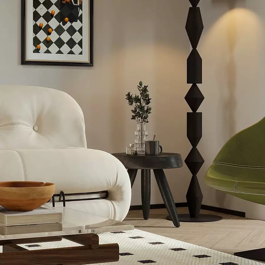Layering with sculptural furniture and natural materials